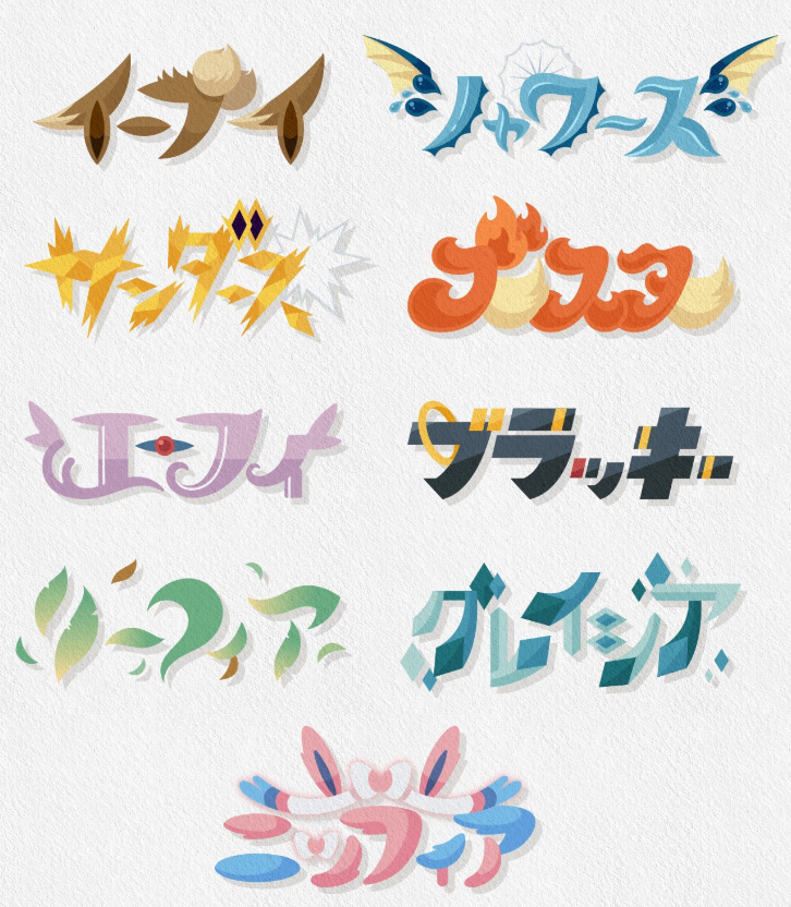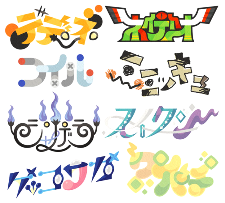 作者はTwitterユーザーのみっけ(@q_micke)さん。「ネイティオ」の文字に羽根や目を織り込んだり、「ミミッキュ」の一部を顔で描いたり、ポケモンの特徴や色合いを文字のデザインに落とし込んでいます。