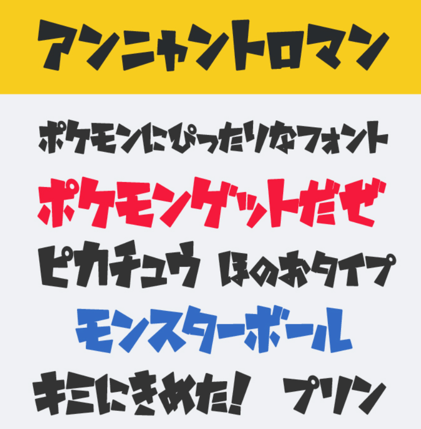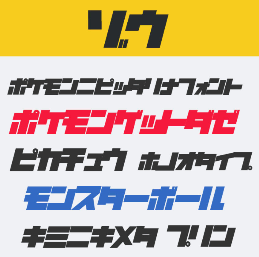 インパクトがあるポップ体フォントになっているので、どんなポケモンにもハマりそうなフォントです。